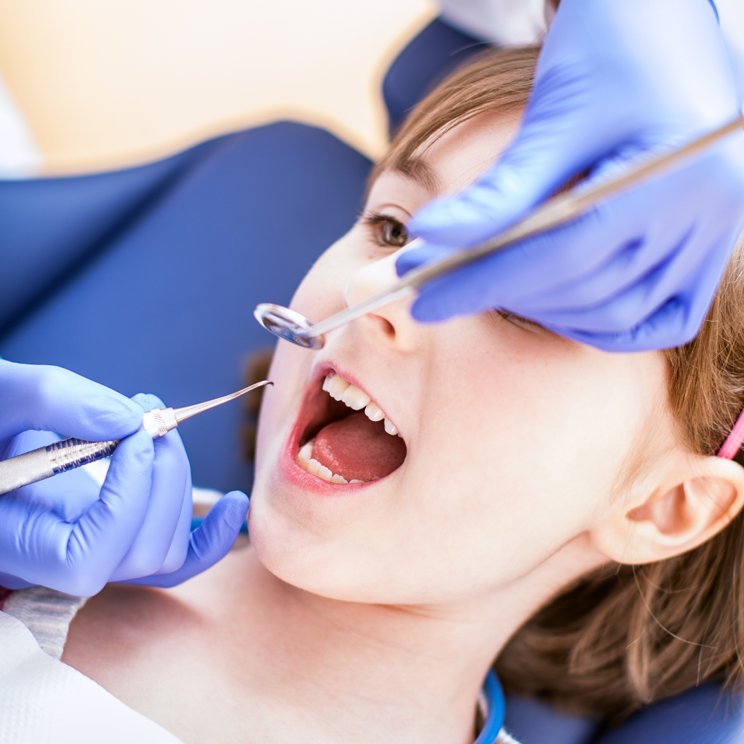 dental hygienist inspecting child's mouth